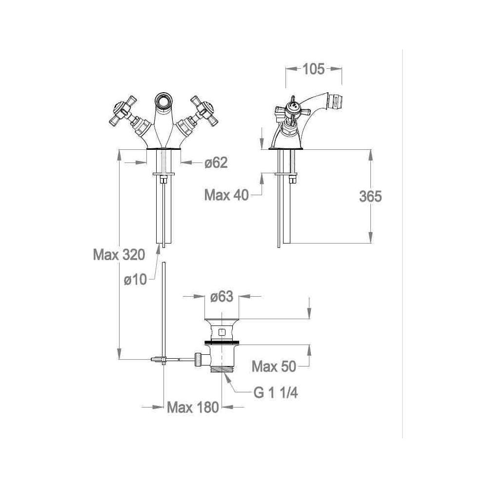 Bateria bidetowa nablatowa z obrotową wylewką Fir Italia Canterbury 30 - 3022185