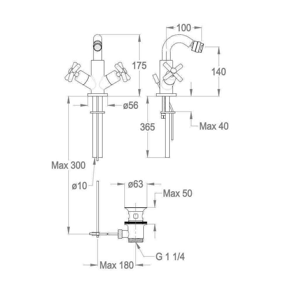 Bateria bidetowa nablatowa 1-otworowa z obrotową wylewką Fir Italia Cora 35 - 3522195