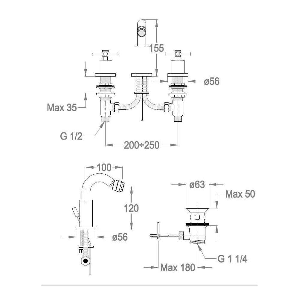 Bateria bidetowa nablatowa 3-otworowa z obrotową wylewką Fir Italia Cora 35 - 3523255