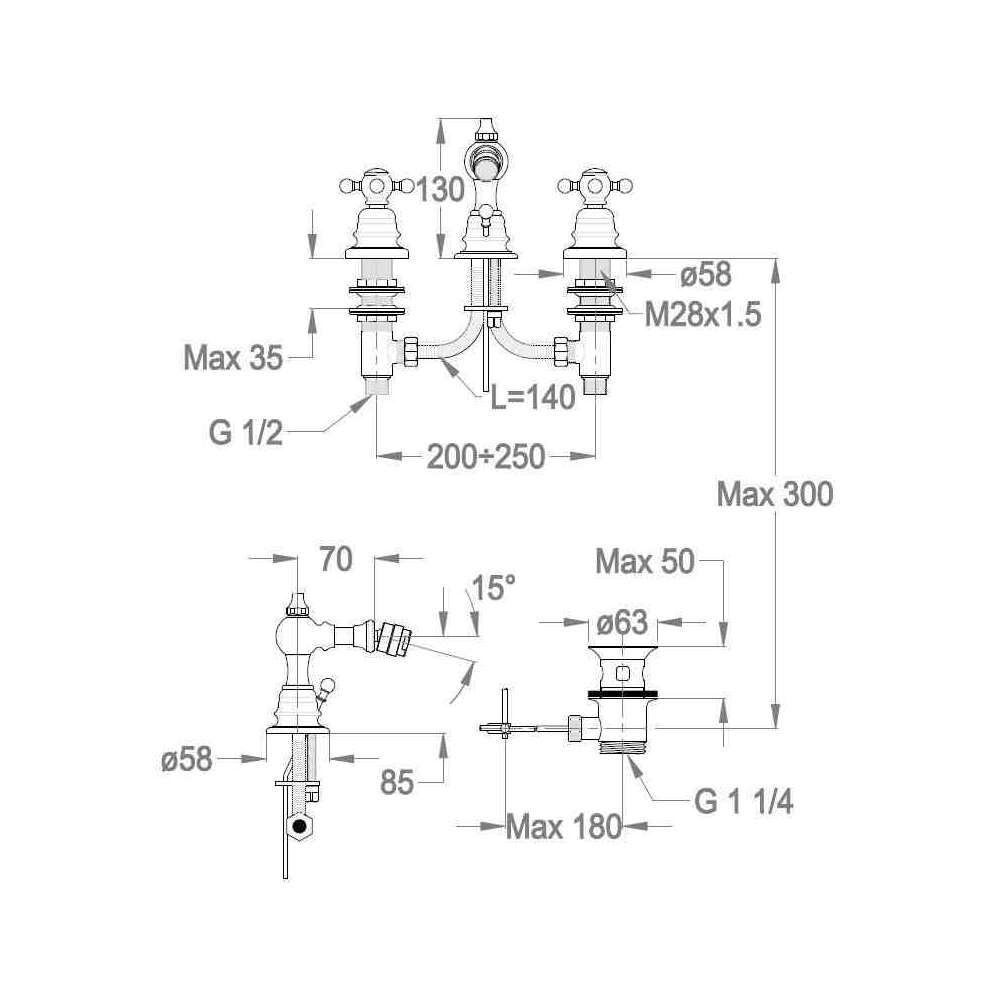 Bateria bidetowa nablatowa Fir Italia Melrose 20 - 2023205