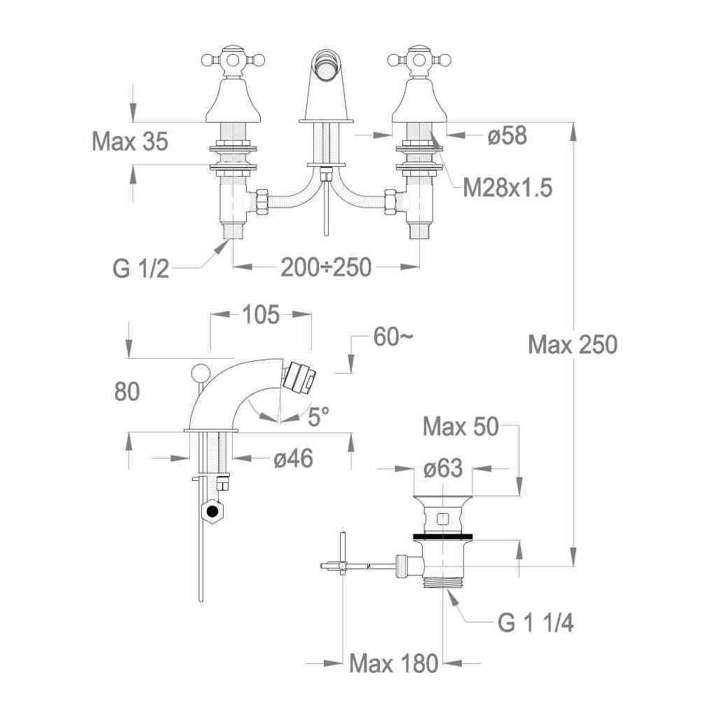 Bateria bidetowa nablatowa 3-otworowa Fir Italia Melrose 22 - 2223215