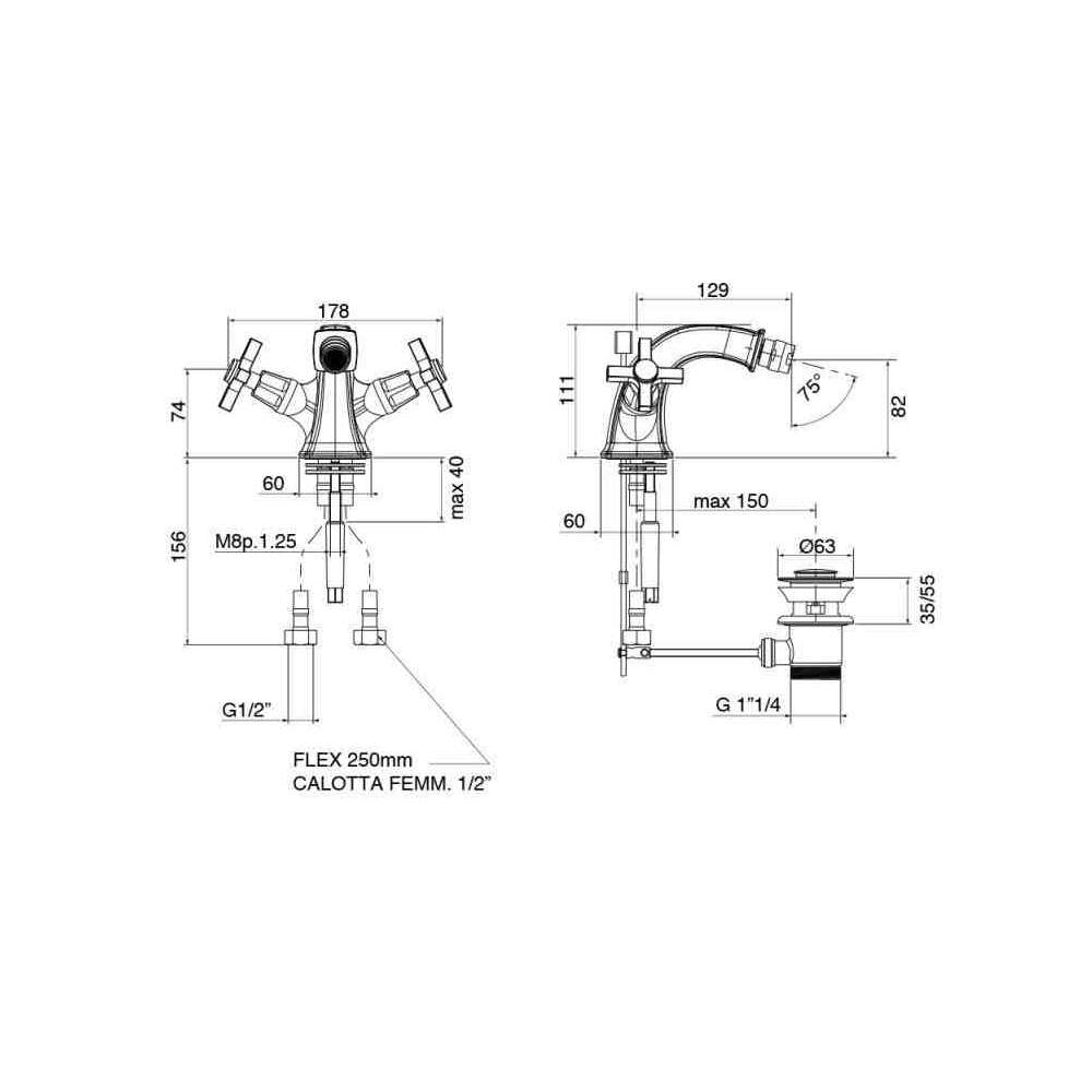 Bateria bidetowa nablatowa 1-otworowa Gentry Home Chopin Metal