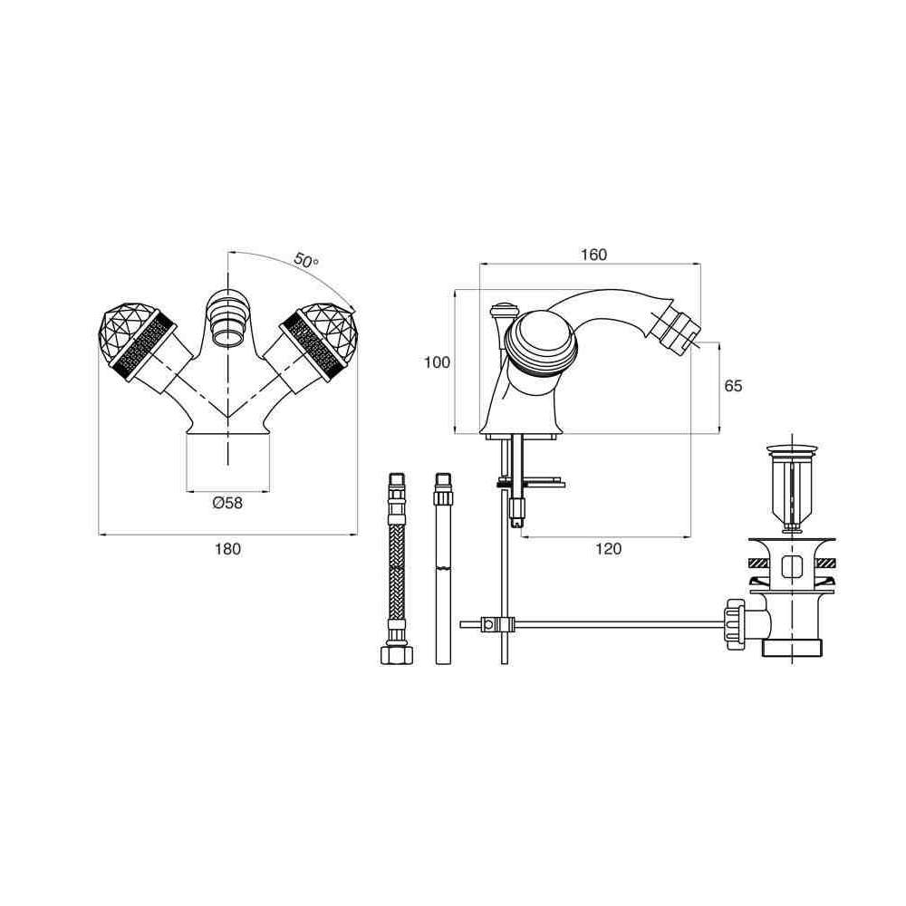 Bateria bidetowa nablatowa 1-otworowa z automatycznym odpływem Gentry Home Crystal