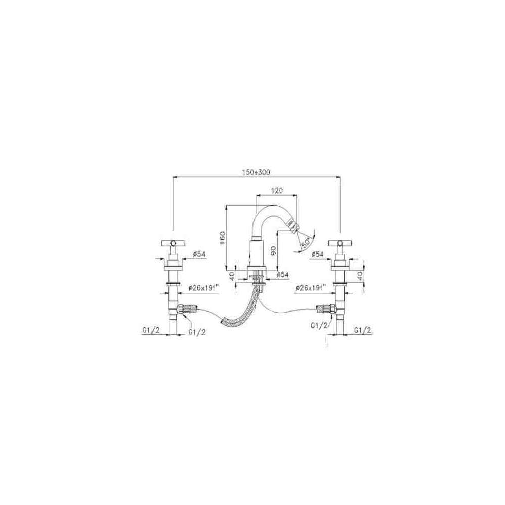 Bateria bidetowa 3-otworowa z obrotową wylewką Guglielmi Vera