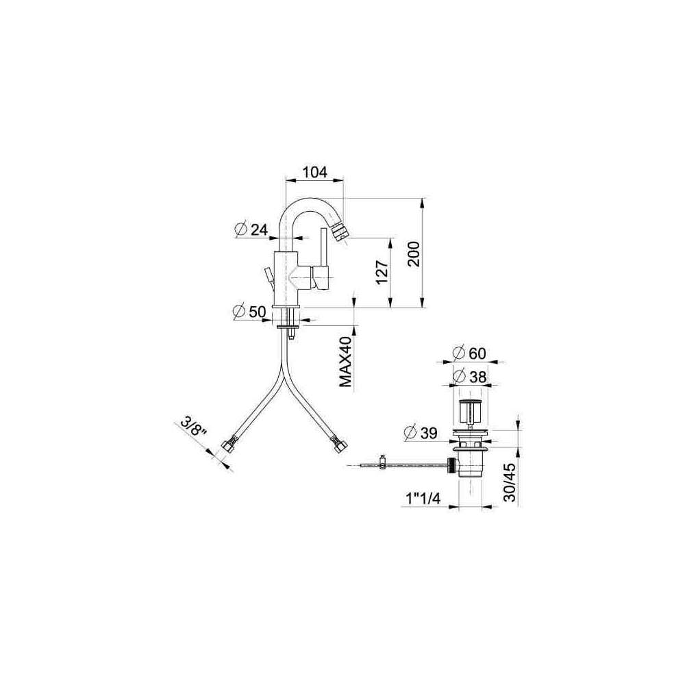 Bateria bidetowa nablatowa mosiężna z perlatorem Roberto Crolla Rubinetterie Jackie