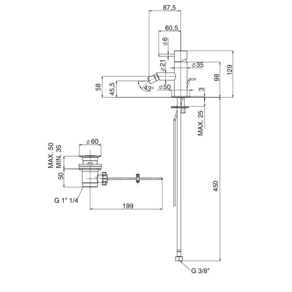 Bateria bidetowa nablatowa mosiężna jednouchwytowa Rubinetterie Mariani Ultraminimal