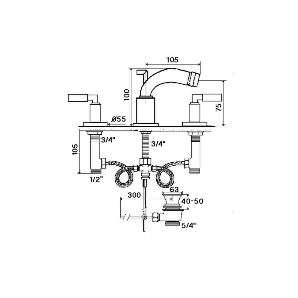 Bateria bidetowa nablatowa 3-otworowa RVB Cliff