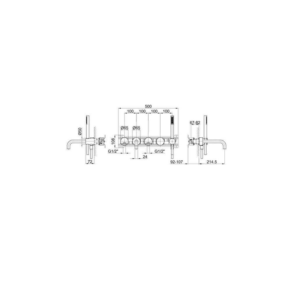 Zestaw wannowy ścienny 5-otworowy z główką prysznicową Aboutwater Af/21