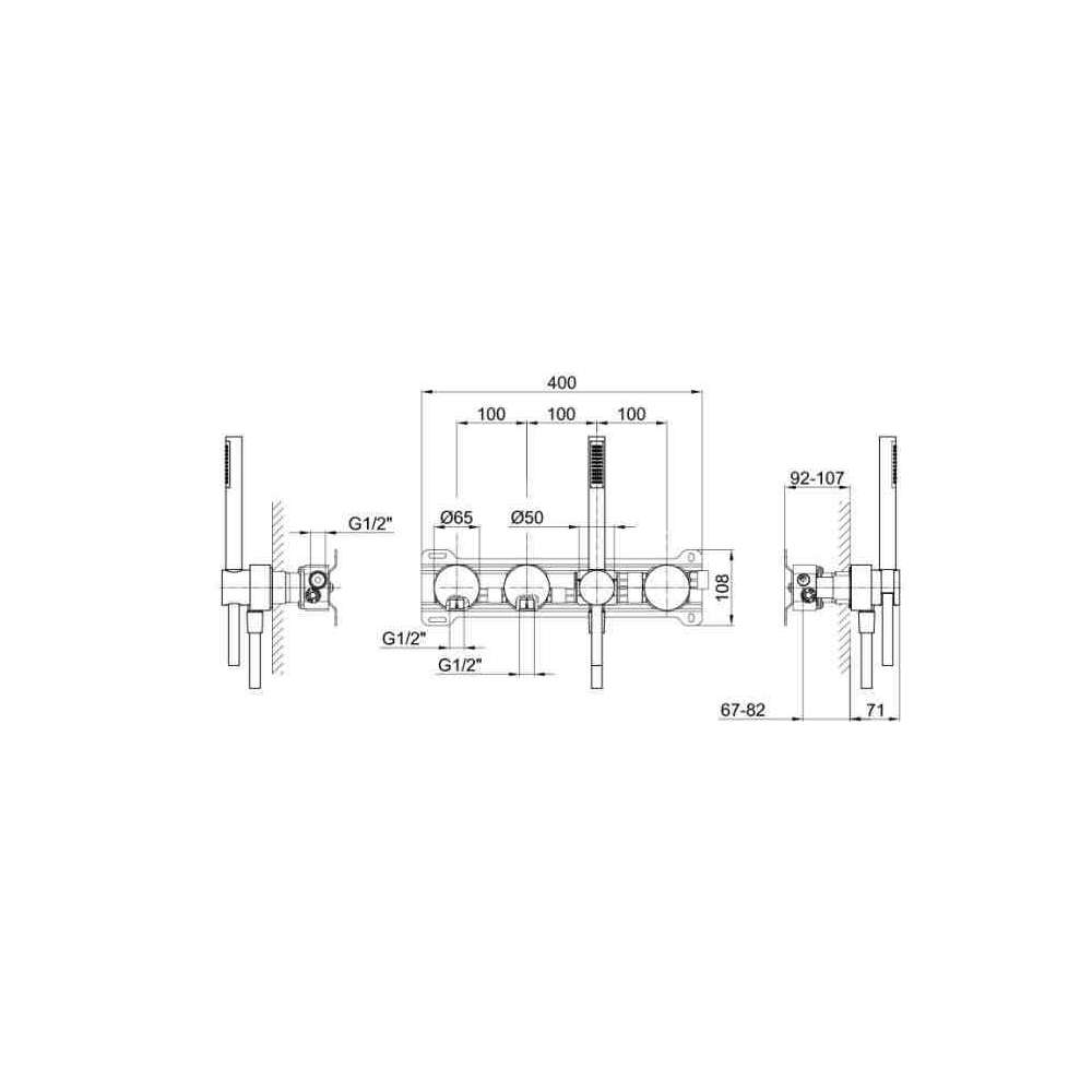 Zestaw wannowy 4-otworowy do montażu na ścianie z główką prysznicową Aboutwater Af/21