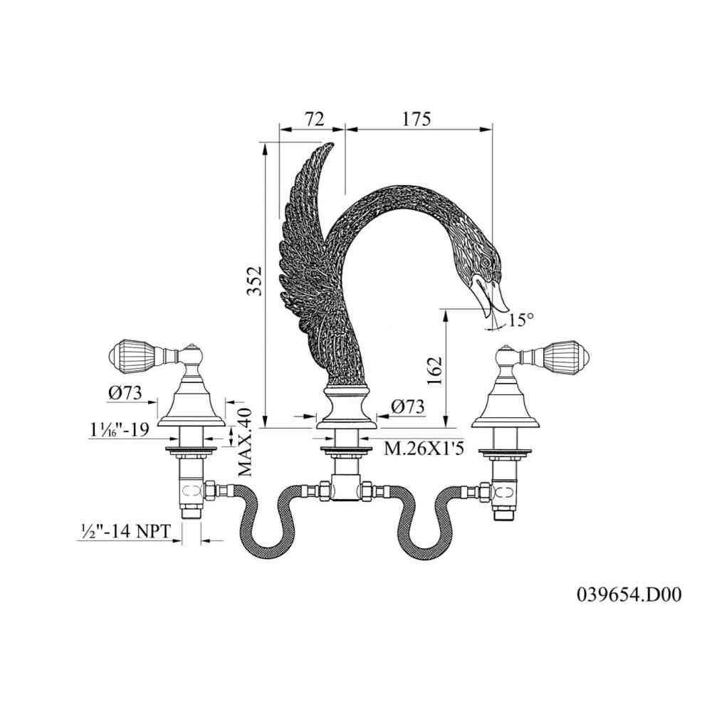 Bateria wannowa 3-otworowa z kryształami Swarovskiego®. Bronces Mestre Antartica Swan