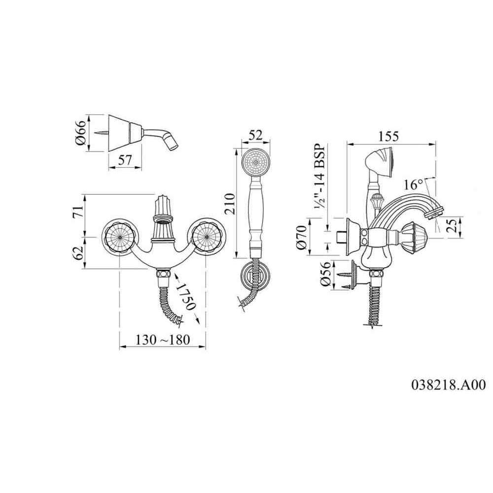 Bateria wannowa 2-otworowa z kryształami Swarovskiego®. Bronces Mestre Indica