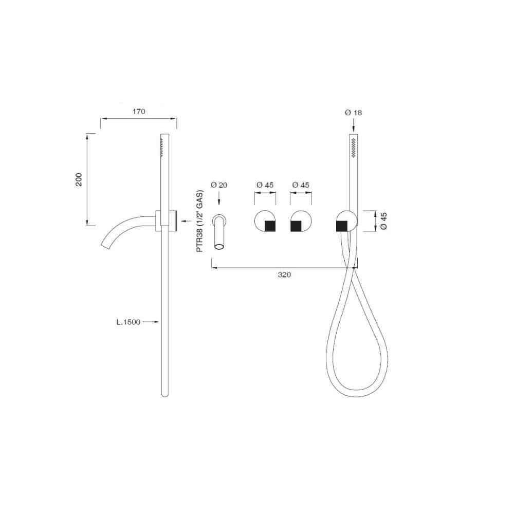 Zestaw 2 baterii naściennych do wanny z wylewką Ceadesign Duet 35