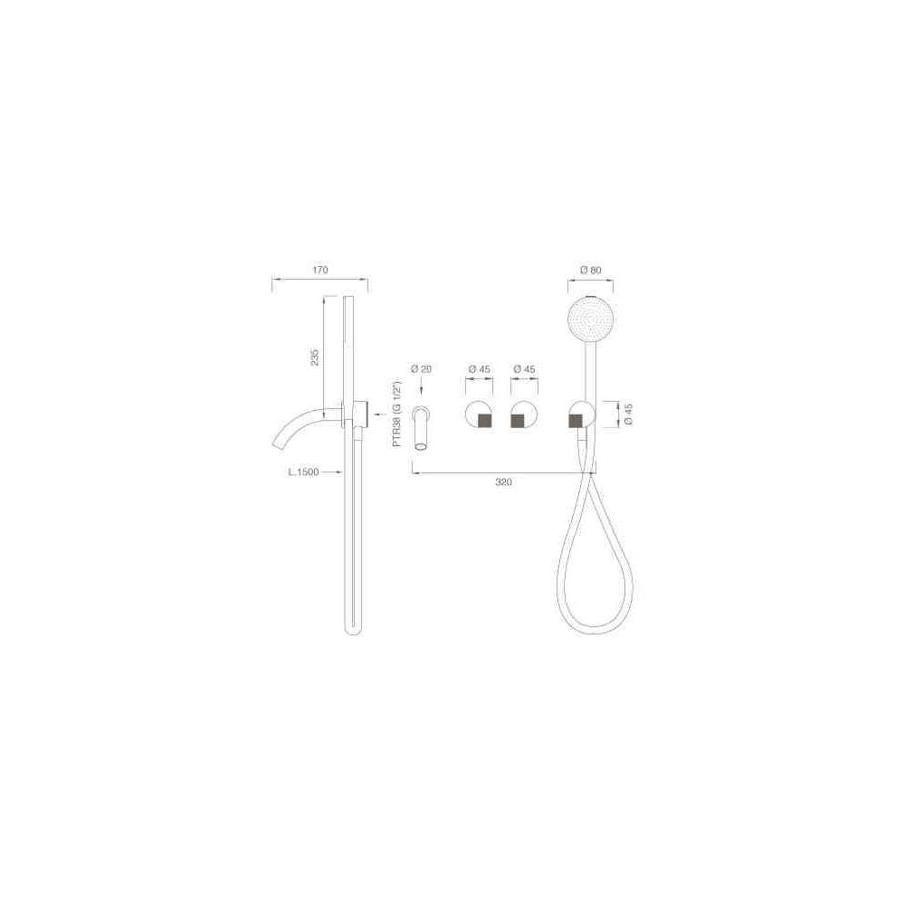 4-otworowa bateria wannowa ze stali nierdzewnej z główką prysznicową Ceadesign Duet 35H