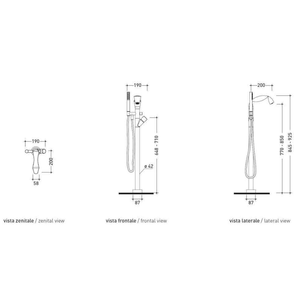 Stojąca bateria wannowa z główką prysznicową Ceramica Flaminia FOLD