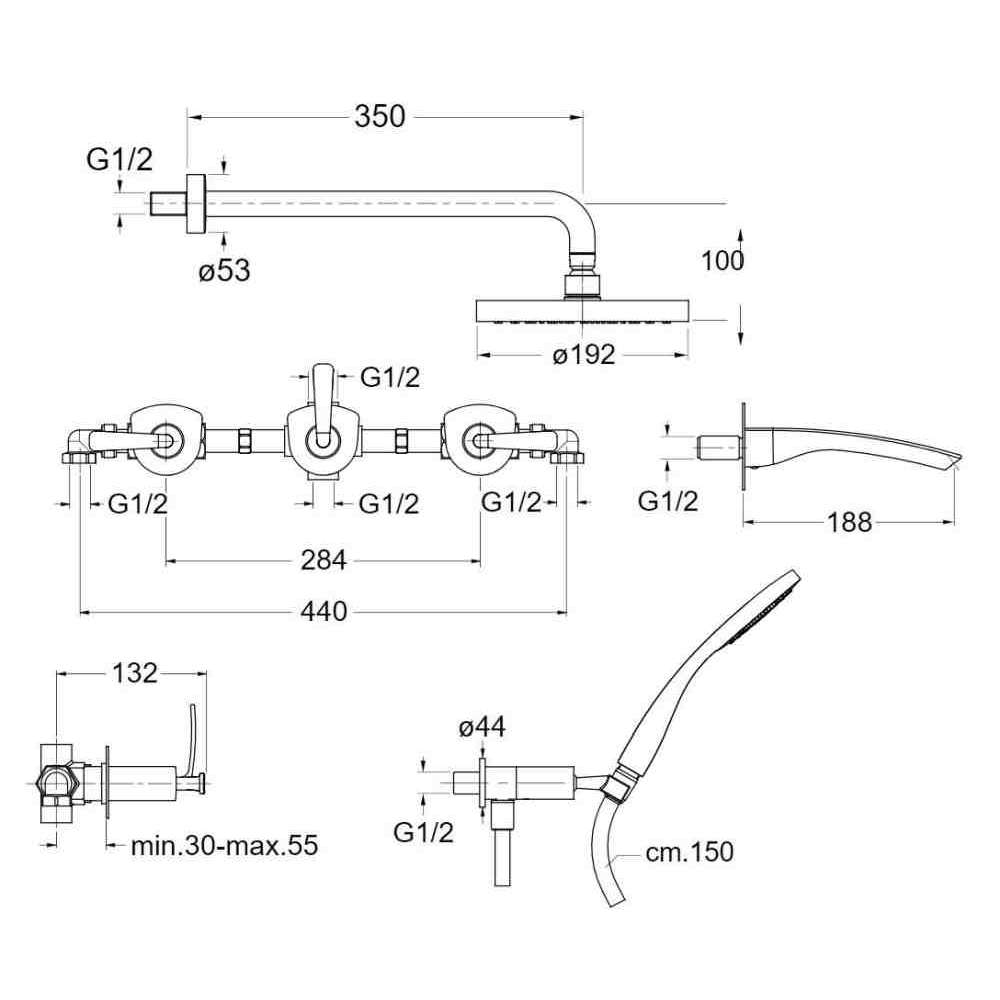 Bateria wannowa z głowicą prysznicową Cristina Rubinetterie Bollicine CRIBO113