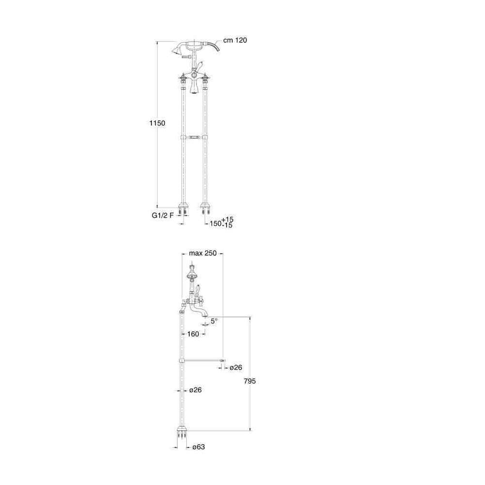 Stojąca bateria wannowa z główką prysznicową Cristina Rubinetterie Canova CRICN102
