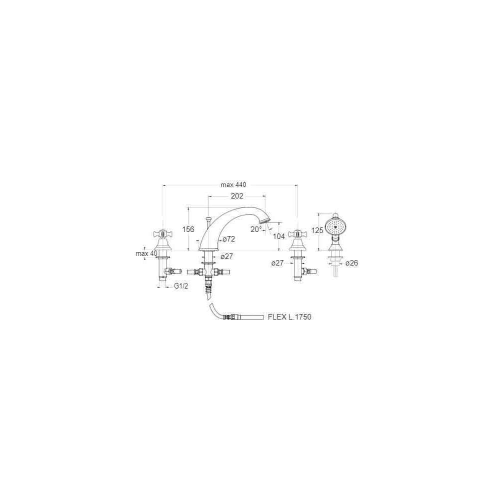 Zestaw wannowy 4-otworowy z główką prysznicową Cristina Rubinetterie Canova CRICN124