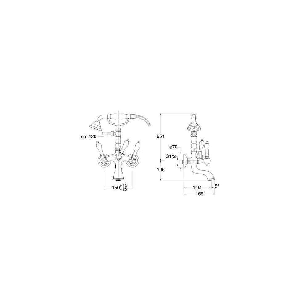 Bateria wannowa ścienna z główką prysznicową Cristina Rubinetterie Canova Elite CRICL100