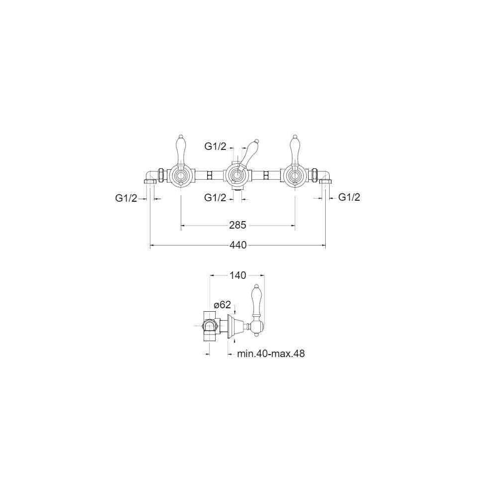 3-otworowa ścienna bateria wannowa z przełącznikiem Cristina Rubinetterie Canova Elite CRICL115