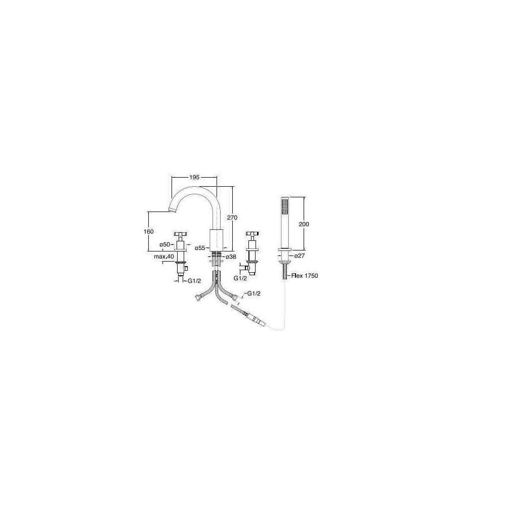 Zestaw wannowy z główką prysznicową z indywidualnymi rozetami Cristina Rubinetterie Cross Road CRICR126