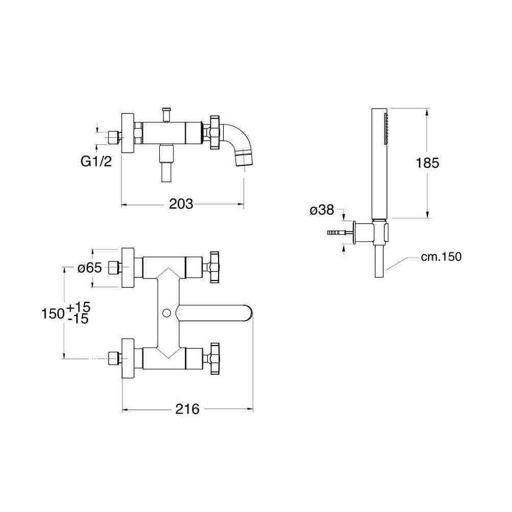 Bateria wannowa ścienna z główką prysznicową Cristina Rubinetterie Cross Road CRICR180