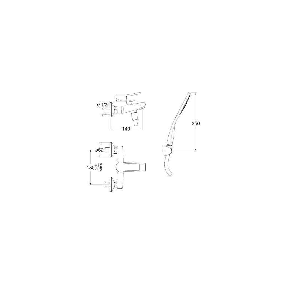 Jednouchwytowa bateria wannowa ścienna z główką prysznicową Cristina Rubinetterie Euromade CRIEM100