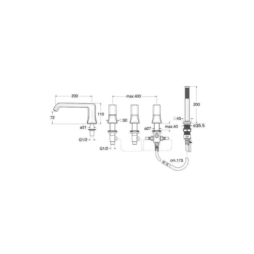 Zestaw wannowy 5-otworowy z główką prysznicową Cristina Rubinetterie Italy CRIIT121