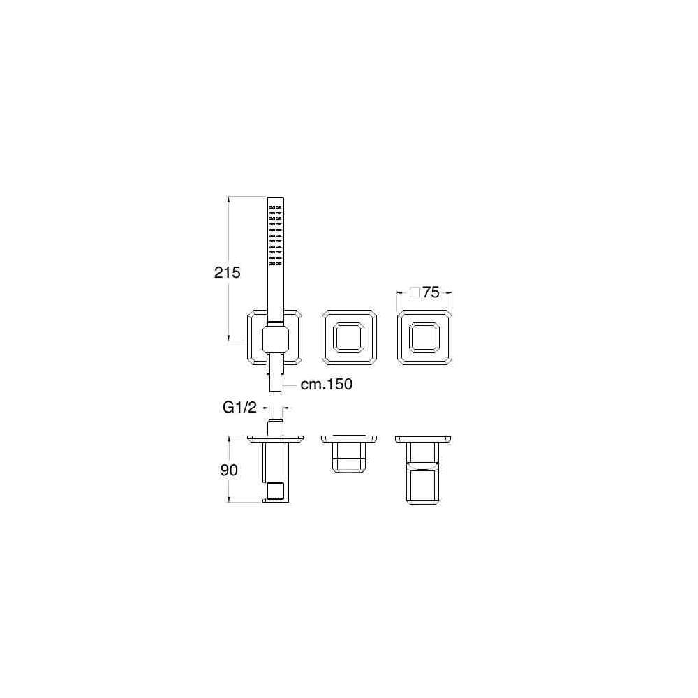 Zestaw wannowy jednouchwytowy z rozdzielaczem z główką prysznicową Cristina Rubinetterie Italy CRIIT603