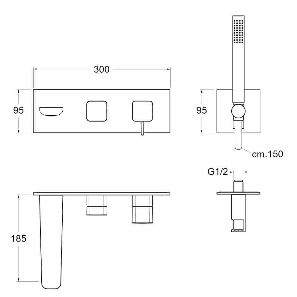 Bateria wannowa ścienna z główką prysznicową Cristina Rubinetterie King CRIKG102
