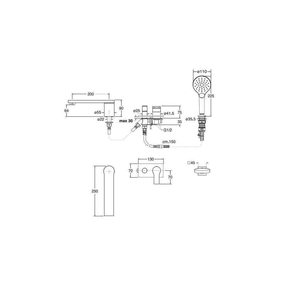 Bateria wannowa jednouchwytowa podtynkowa z główką prysznicową Cristina Rubinetterie Omega CRIOG121