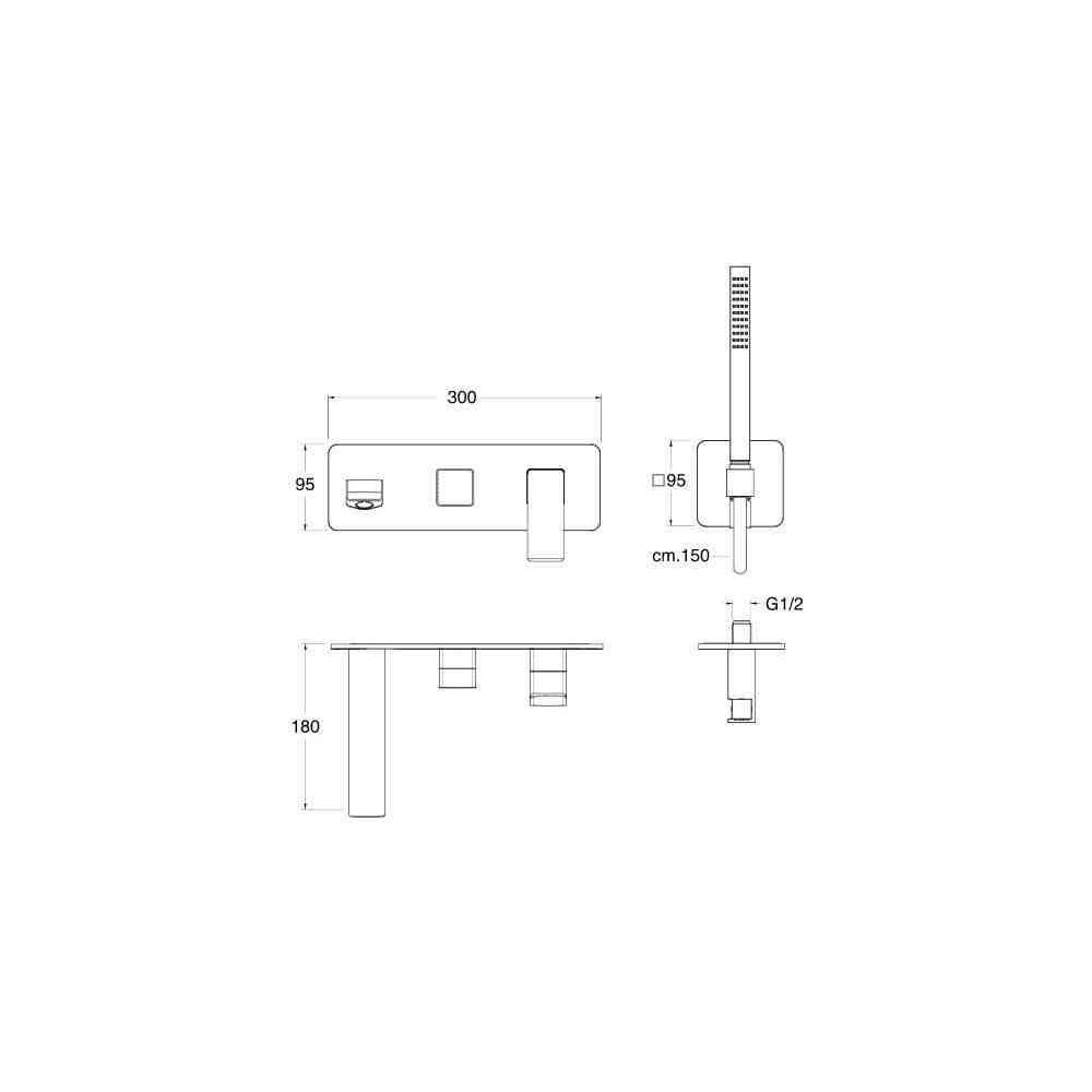 Zestaw wannowy naścienny z główką prysznicową Cristina Rubinetterie Quadri S CRIQS103