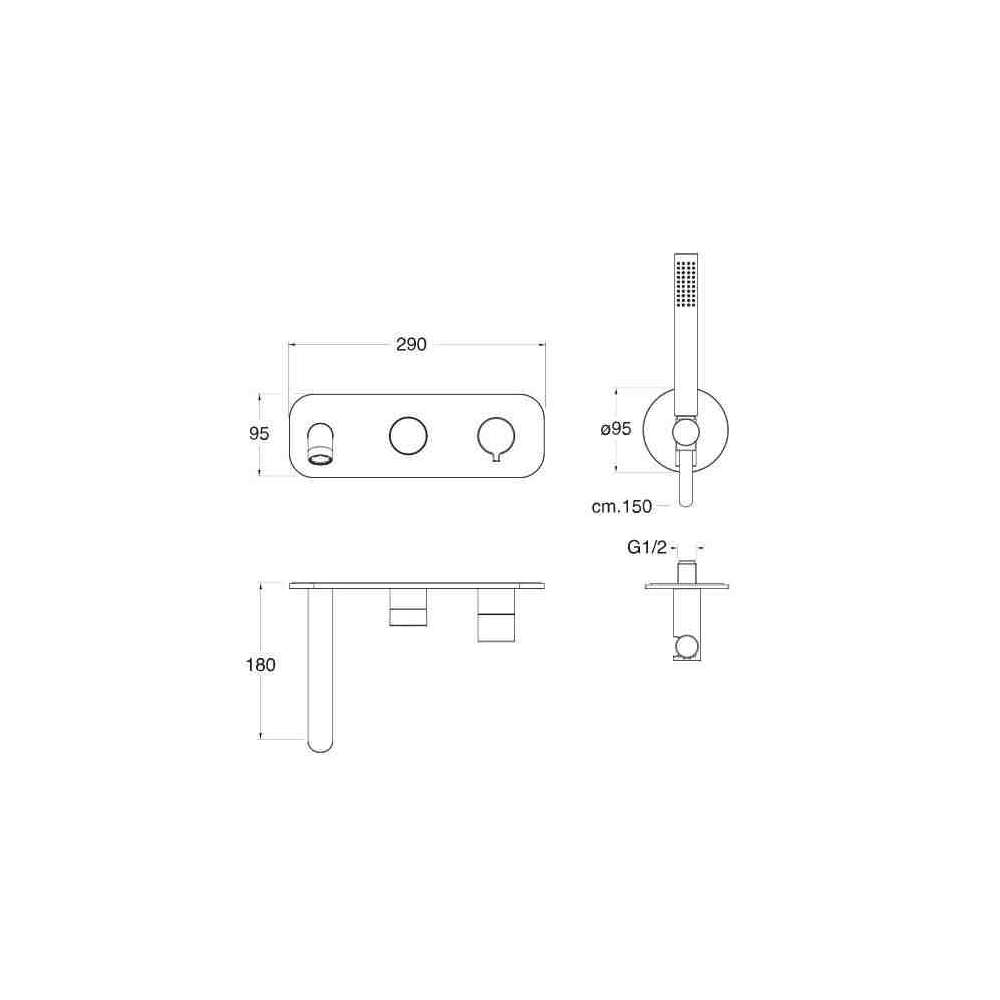 Bateria prysznicowa ścienna z główką prysznicową Cristina Rubinetterie Rx CRIRx103