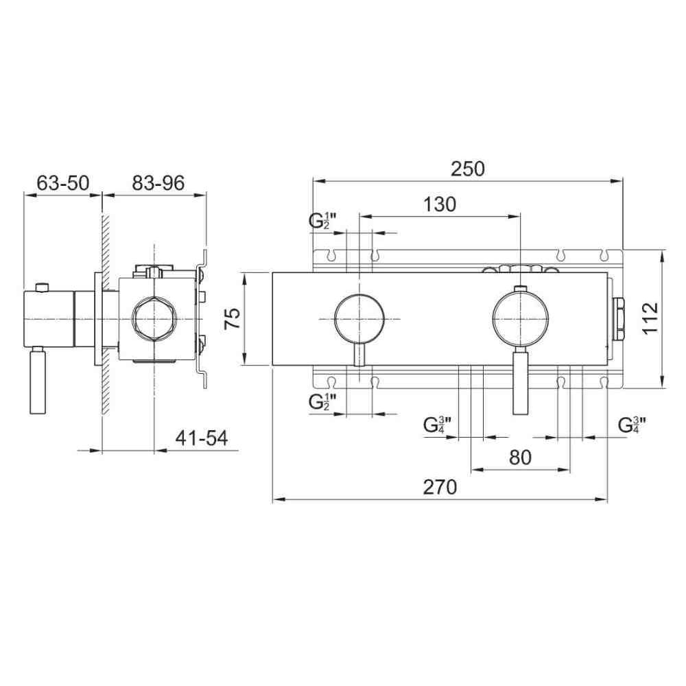 SZTUKA. D272A/4872B — Wbudowana bateria wannowo-prysznicowa termostatyczna (3/4”) z przełącznikiem 2 wyjścia.