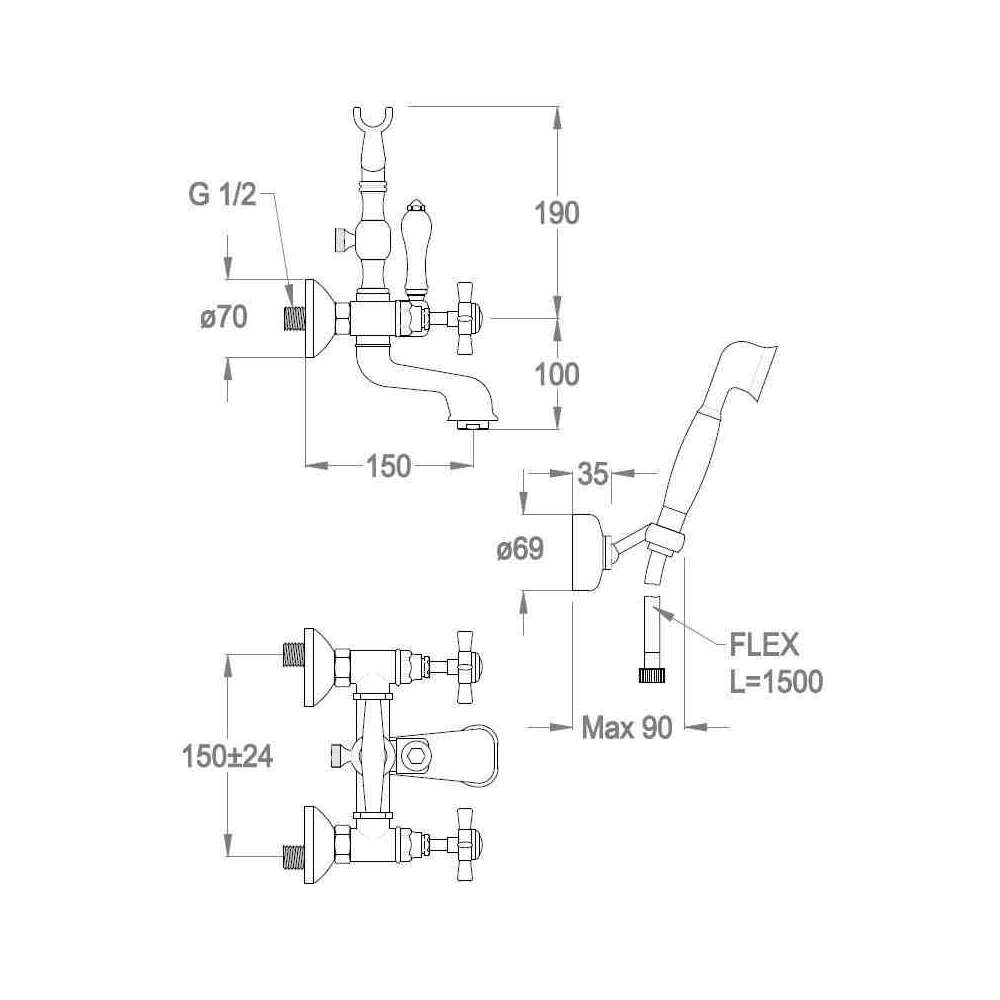 Bateria wannowa ścienna z główką prysznicową Fir Italia Canterbury 30 - 3031232