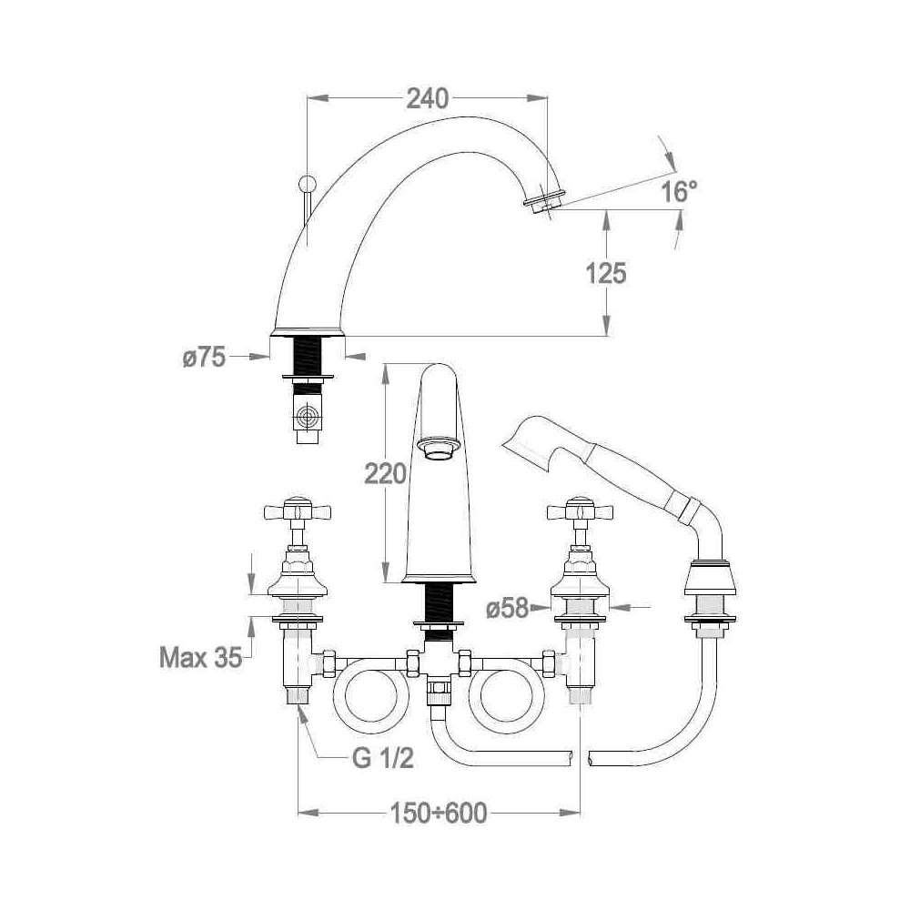 Zestaw wannowy 4-otworowy z główką prysznicową Fir Italia Canterbury 30 - 3047312