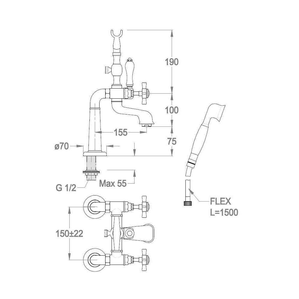 Bateria wannowa z główką prysznicową Fir Italia Canterbury 30 - 3047852