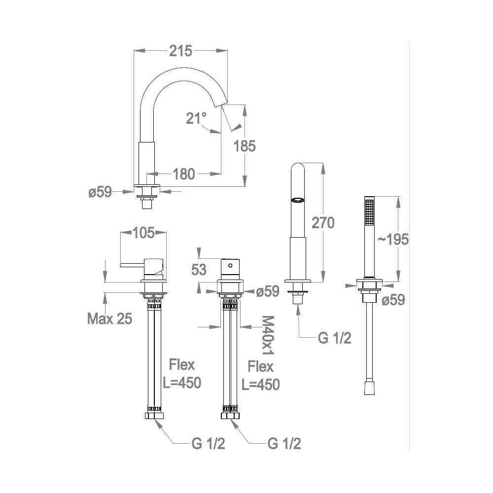 Zestaw wannowy 4-otworowy z główką prysznicową Fir Italia Cleo 84 - 8431404