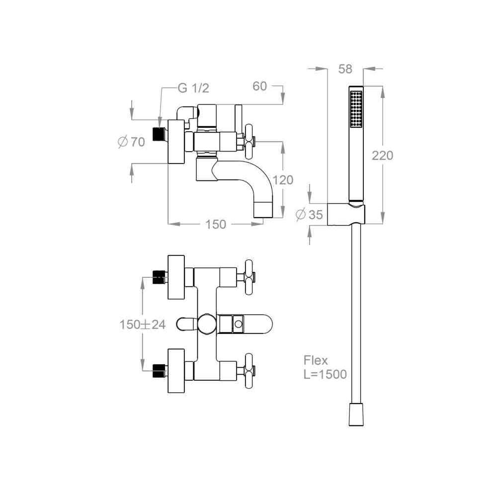 Bateria wannowa ścienna mosiężna z główką prysznicową Fir Italia Cora 35 - 3534017