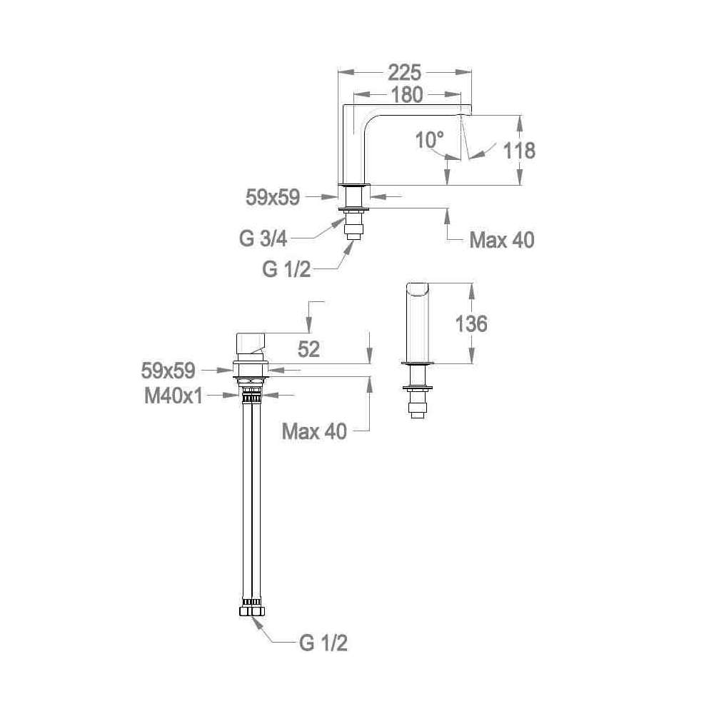 2-otworowa jednouchwytowa bateria wannowa z mosiądzu chromowanego Fir Italia Daily Cube 45 - 4531204