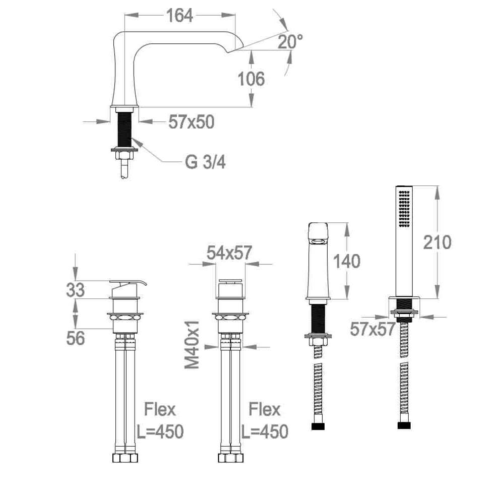 Zestaw wannowy 4-otworowy z główką prysznicową Fir Italia DÉCO - 8748552