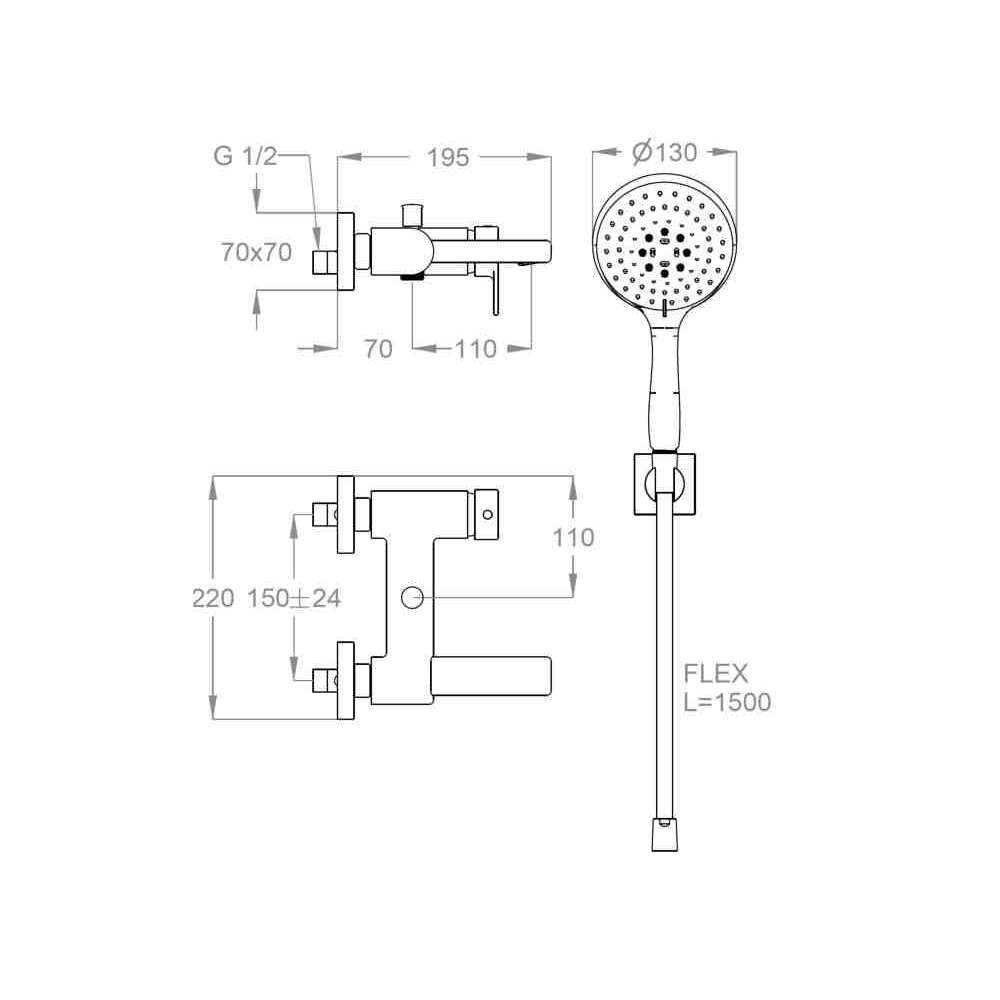 3-otworowa mosiężna bateria wannowa z główką prysznicową Fir Italia Doda 67 - 6734016