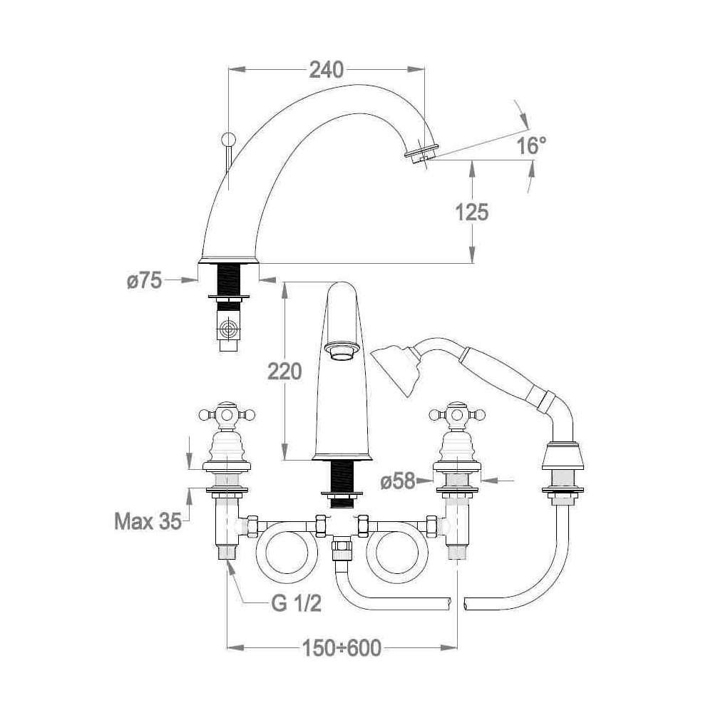 Zestaw wannowy 4-otworowy z główką prysznicową Fir Italia Melrose 20 - 2047312