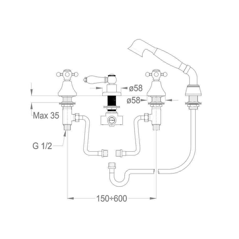 Zestaw wannowy 4-otworowy z główką prysznicową Fir Italia Melrose 22 - 2247422