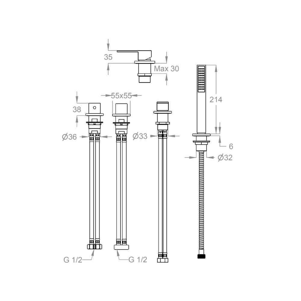 Zestaw wannowy mosiężny 4-otworowy z rozdzielaczem z główką prysznicową Fir Italia PLAYONE 90 - 9031504