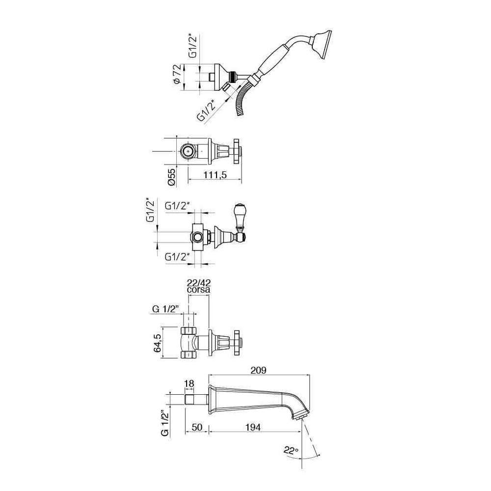 Zestaw wannowy ścienny 5-otworowy Gentry Home Chopin White