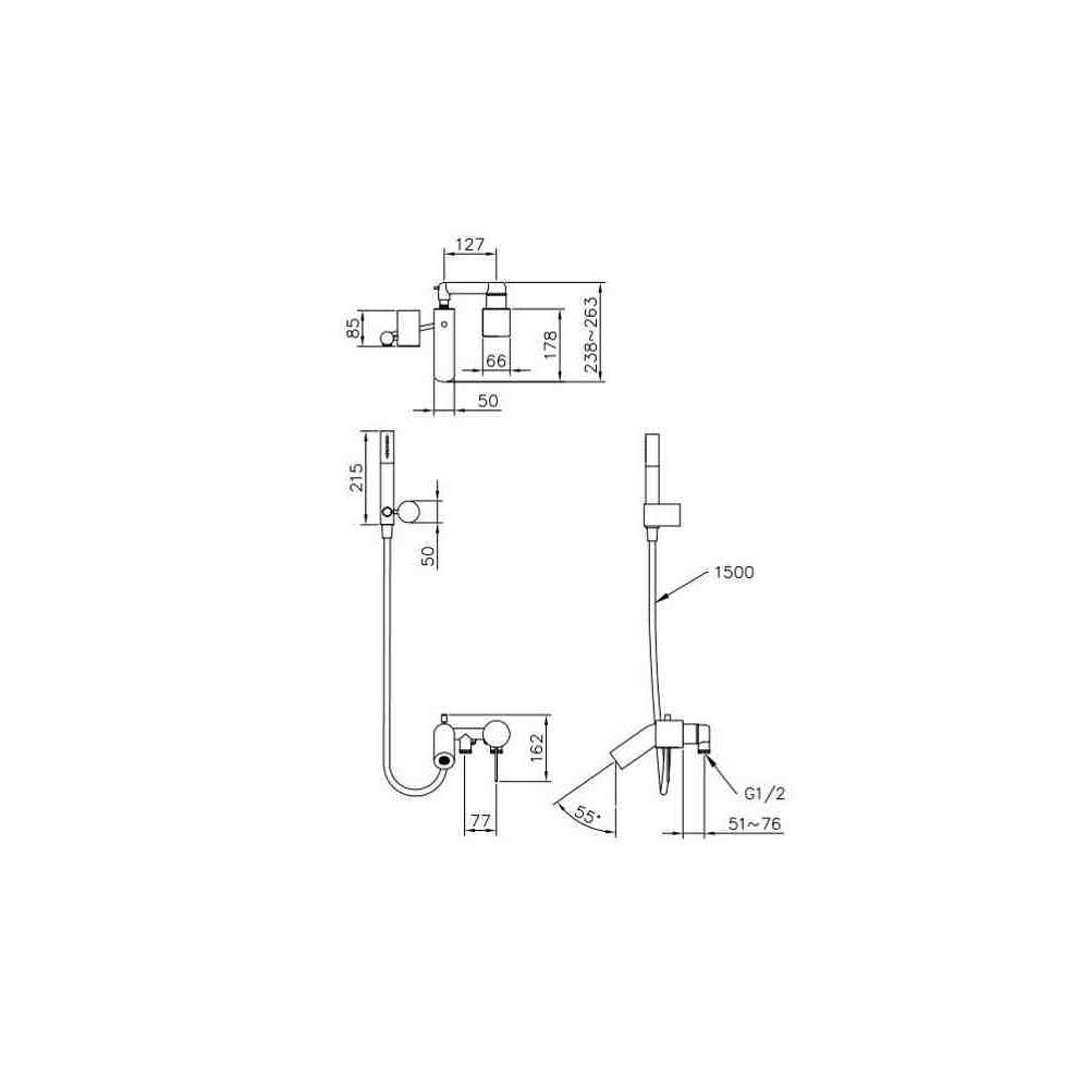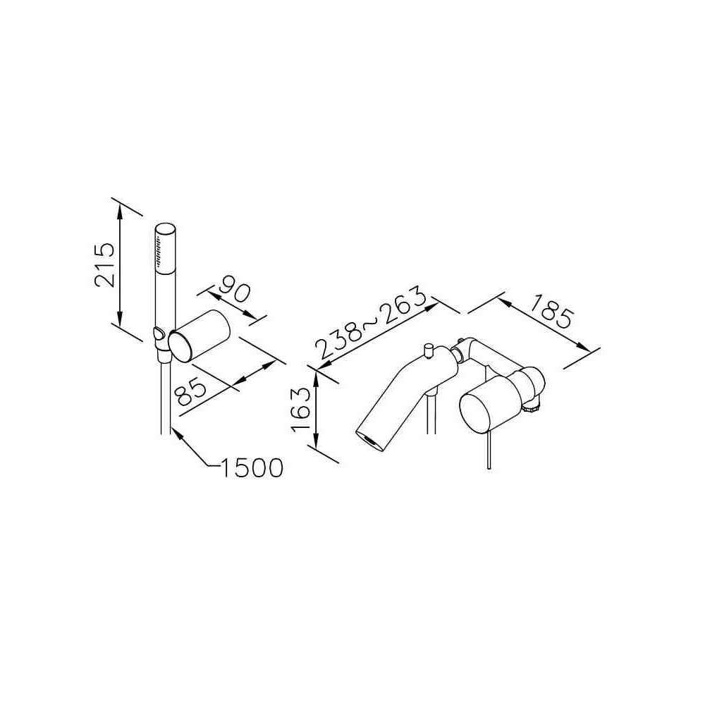 Bateria wannowa z główką prysznicową, wężem i uchwytem ściennym Justime Lucky 7