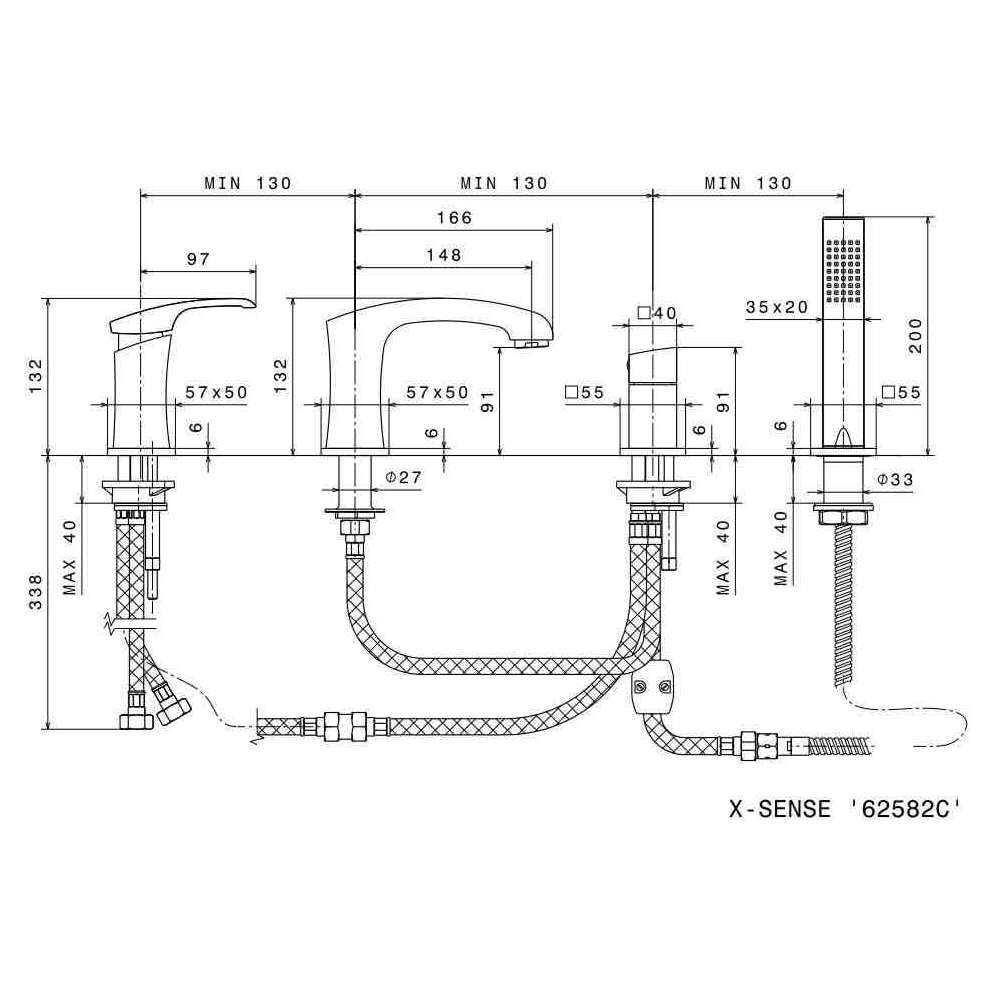 4-otworowa jednouchwytowa bateria wannowa z główką prysznicową Newform X-Sense