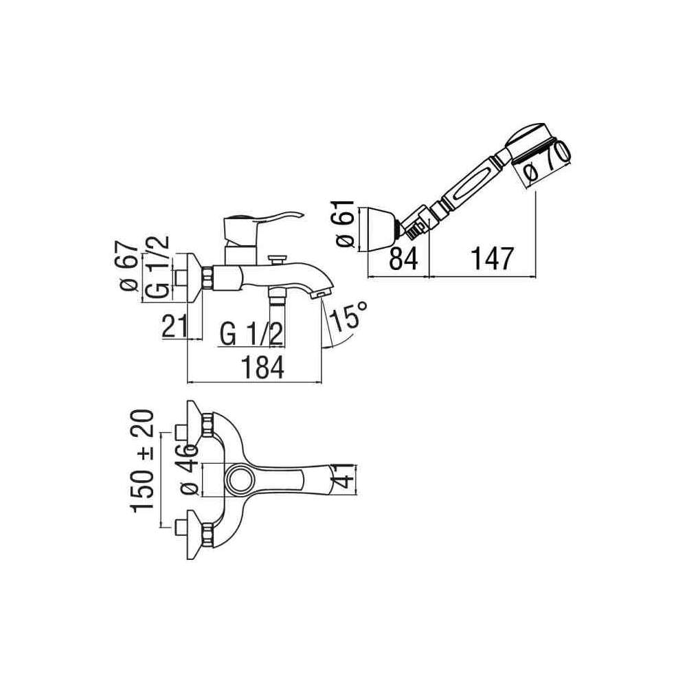 Jednouchwytowa bateria wannowa ścienna Nobili Rubinetterie Sofì