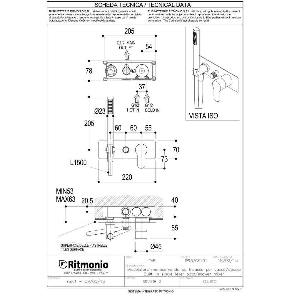 Bateria wannowa ścienna z główką prysznicową Ritmonio Tab