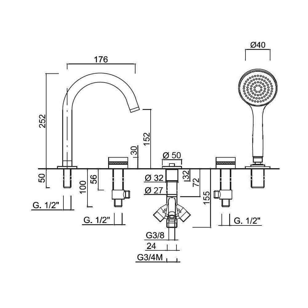Bateria wannowa 5-otworowa podtynkowa z główką prysznicową Rubinetteria Giulini Deluxe - Myring - FMR0160DL
